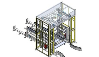 3、結(jie)合機左右伸出叉臂舉升貨物,臺車(che)推出;